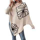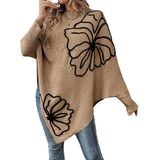 Feature:Old money 3d floral asymmetric knit poncho pullovers sweater for women,with batwing long sleeve,drop shoulder, mock neck,3d floral appliques design.Women elegant mock neck dolman sleeve pullover sweaters,stylish floral embroidered shawl poncho sweaters.Oversized fall drop shoulder batwing sleeve knitted tops.This ladies retro flower print irregular hem cape shawl wrap is suitable for spring,autumn and winter outwear.