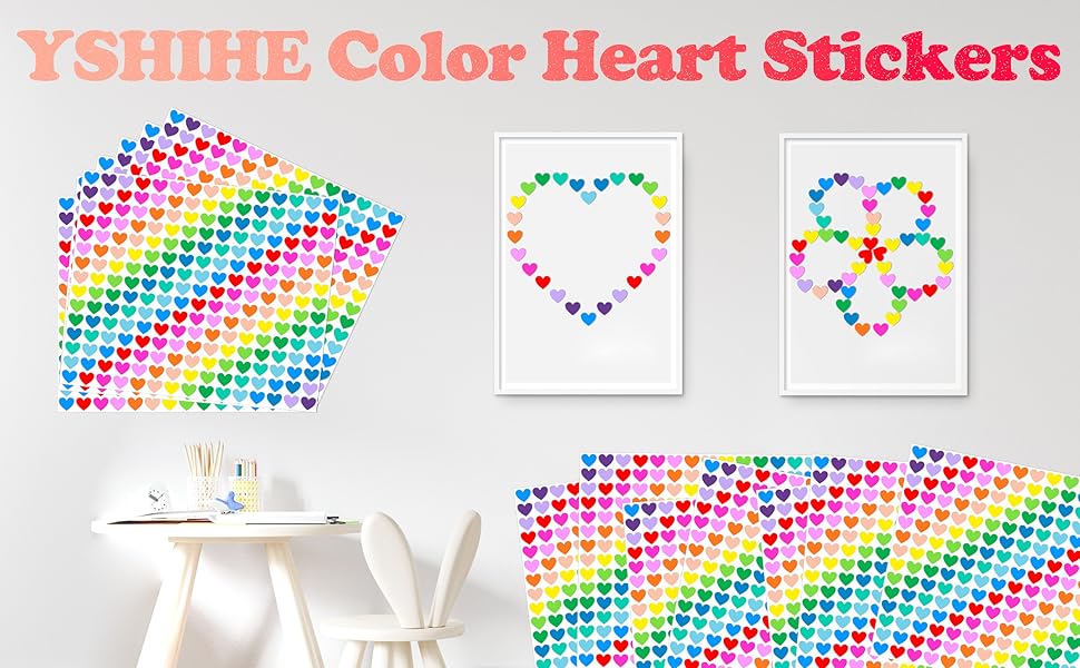 YSHIHE Heart Stickers, 4050 Pieces, 1/2 Inch Mini Colorful Stickers for Kids, Party Favors, Decorating