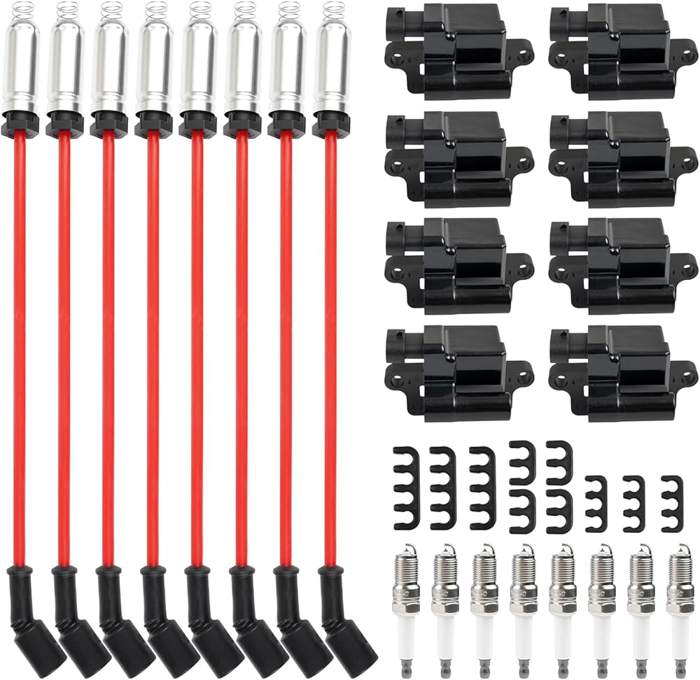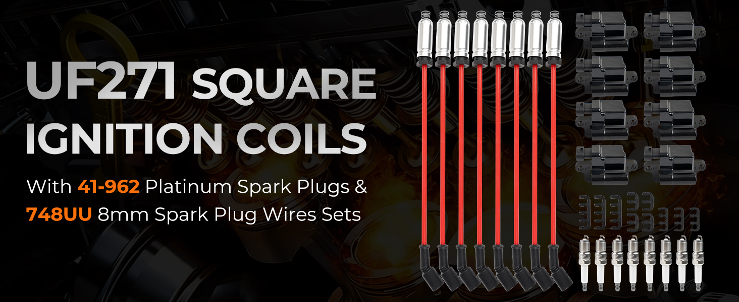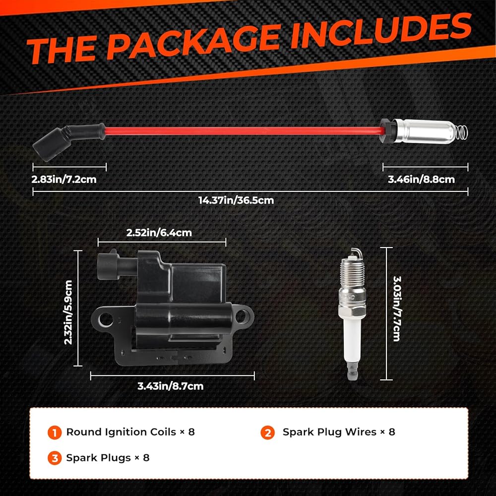 [Package Contents] The package includes 8 x Square Ignition Coil, 8 x Spark Plugs, 8 x Spark Plug Wires.