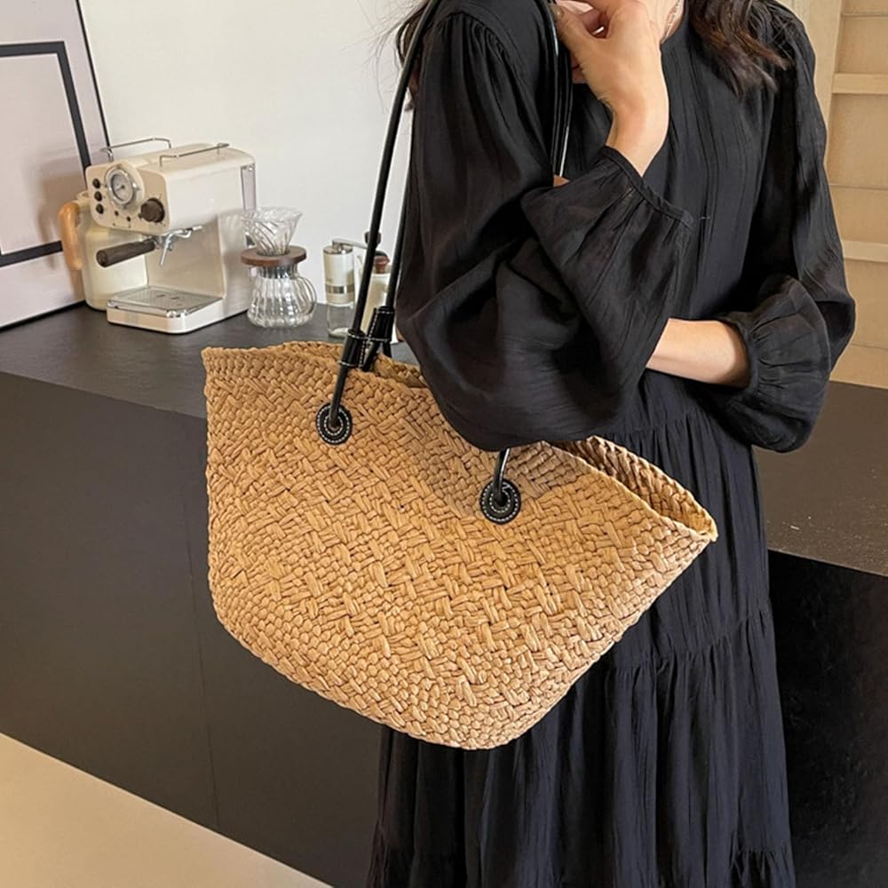 LARGE CAPACITY DESIGN: This woven beach bag offers ample space to hold your daily essentials, making it a great companion for traveling or shopping trips.