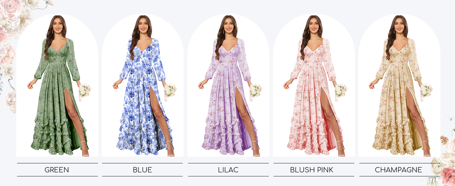 Fabic:Ruffle Bridesmaid Dresses made of flowy chiffon,breathable,lightweight,soft,skin friendly which will bring you comfortable experience.Match with purse accessories,sandals,high heels,easy to complete fashion and attractive look.