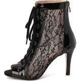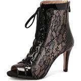 Women Open Toe Dance Ankle Boots Mesh Lace up Latin Salsa Dress Shoes Party Dancing Heels