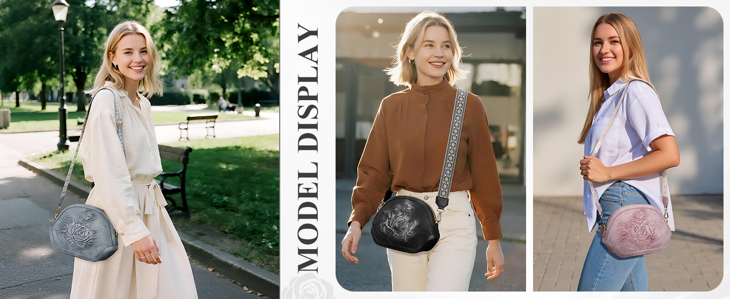【EMBOSSED ROSE ARTISTRY】Stand out with intricate 3D rose floral embossing on premium vegan leather—vintage-inspired craftsmanship meets modern boho style. This unique crossbody bag adds artistic elegance to any outfit, perfect for women who love distinctive accessories.