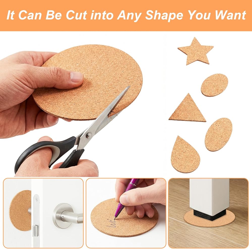 Widely Used: These self-adhesive cork mats have a wide range of applications.You can place them under cups, pans, and dishes as heat-insulating pads. They can also be used as cushions for tables, chairs, and sofas to prevent furniture from scratching the floor