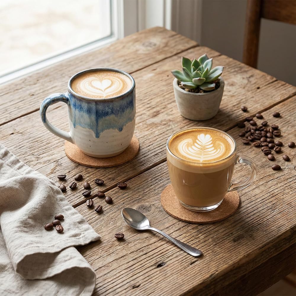 Premium Material: The round cork coasters are made of natural cork, soft to the touch so they won't scratch the surface, durable and lightweight, not easy to crack or wear. They have good heat resistance and can act as insulation pad, suitable for placing cups or other items