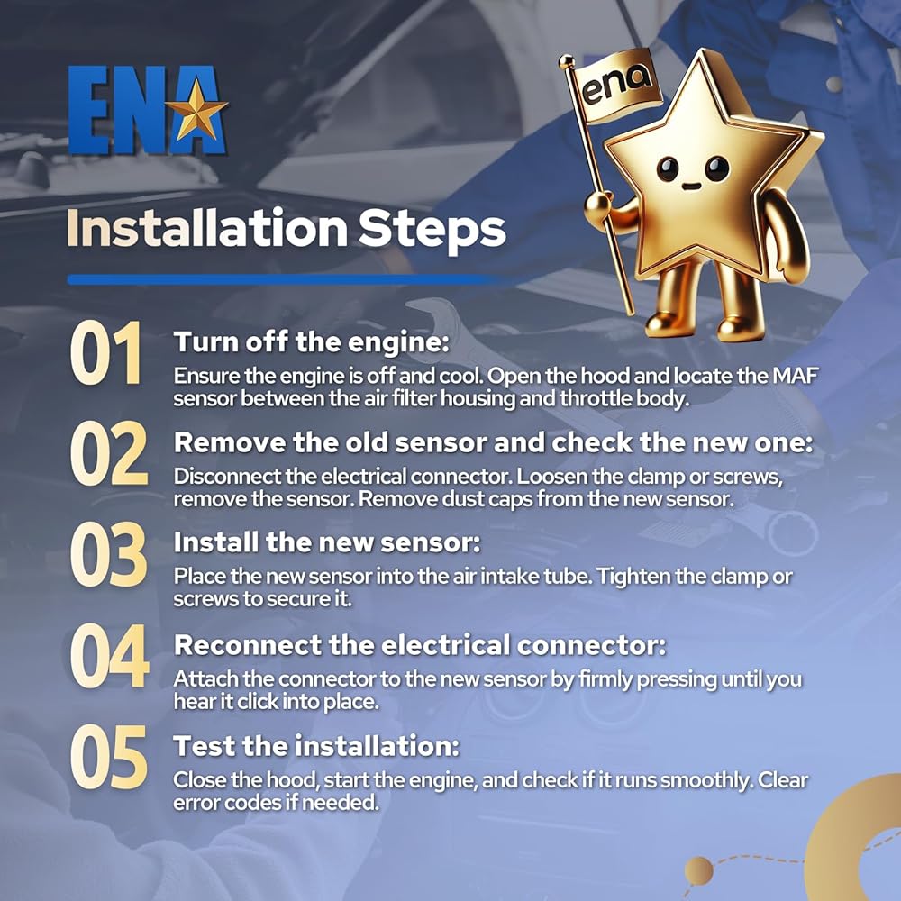 ENA Sensor MAF Features: Designed for easy installation and maintenance, this air flow sensor provides accurate air flow enhancing fuel efficiency and ensuring proper engine operation. The mass flow air sensor is compatible with a wide range of models, including the 320i xDrive, 328i GT xDrive, 528i xDrive, 428i xDrive Gran Coupe, X1, X2, Z4, M2, M3, Cooper