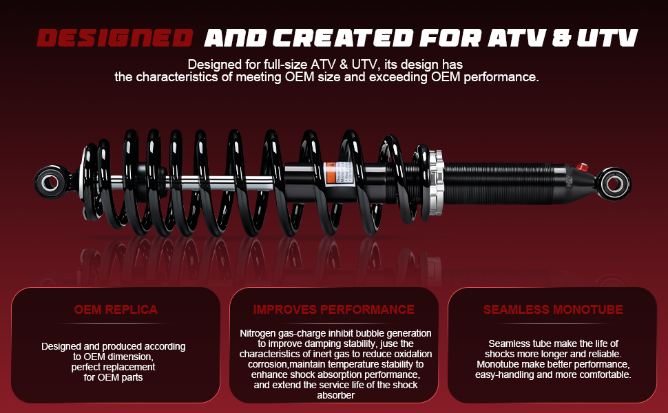 Monotube Rear Shocks, Shock Absorber, Struts for Can-Am Outlander Max 500 STD, XT; 650/Max 650 STD, XT; 800R/Max 800R STD, XT; OEM#: 706000792, Amortiguadores Can-Am Outlander 500/650/800