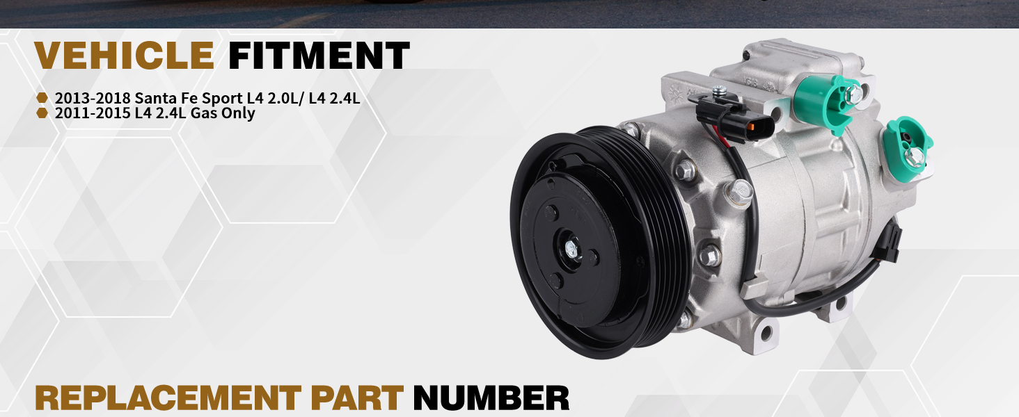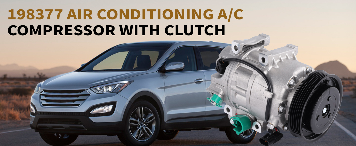198377 Air Conditioning A/C Compressor with Clutch Compatible with 2013-2018 Santa Fe Sport L4 2.0L/ L4 2.4L Kia Sorento 2012-2014 Replace 977011U500 CO-11349C