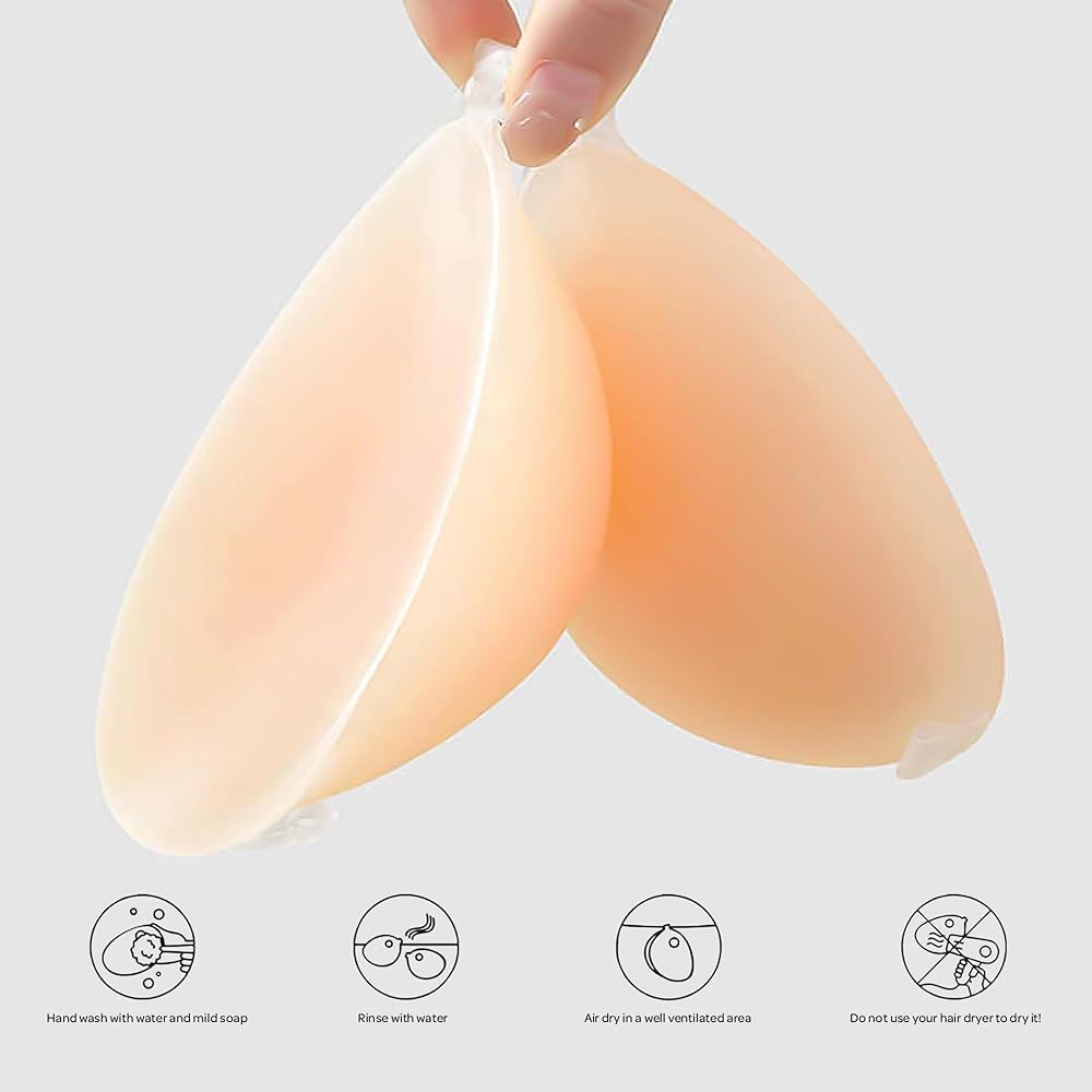 Easy-Cleaning & Reusable: It is easy to clean only need to simply wet the adhesive surface with warm water and mild detergent and then air to dry it. This strapless bra can be reused many times with good maintenance.