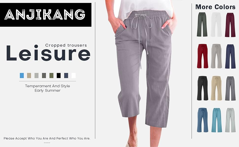 Various Styles: cotton capri pants for women elastic waist, flowy pants for women summer, womens pants summer, womens cropped linen pants, linen pants women, pants women summer, linen wide leg pants for women petite, summer pants for women, women's all cotton capris