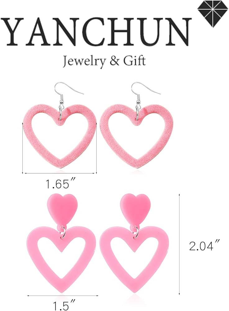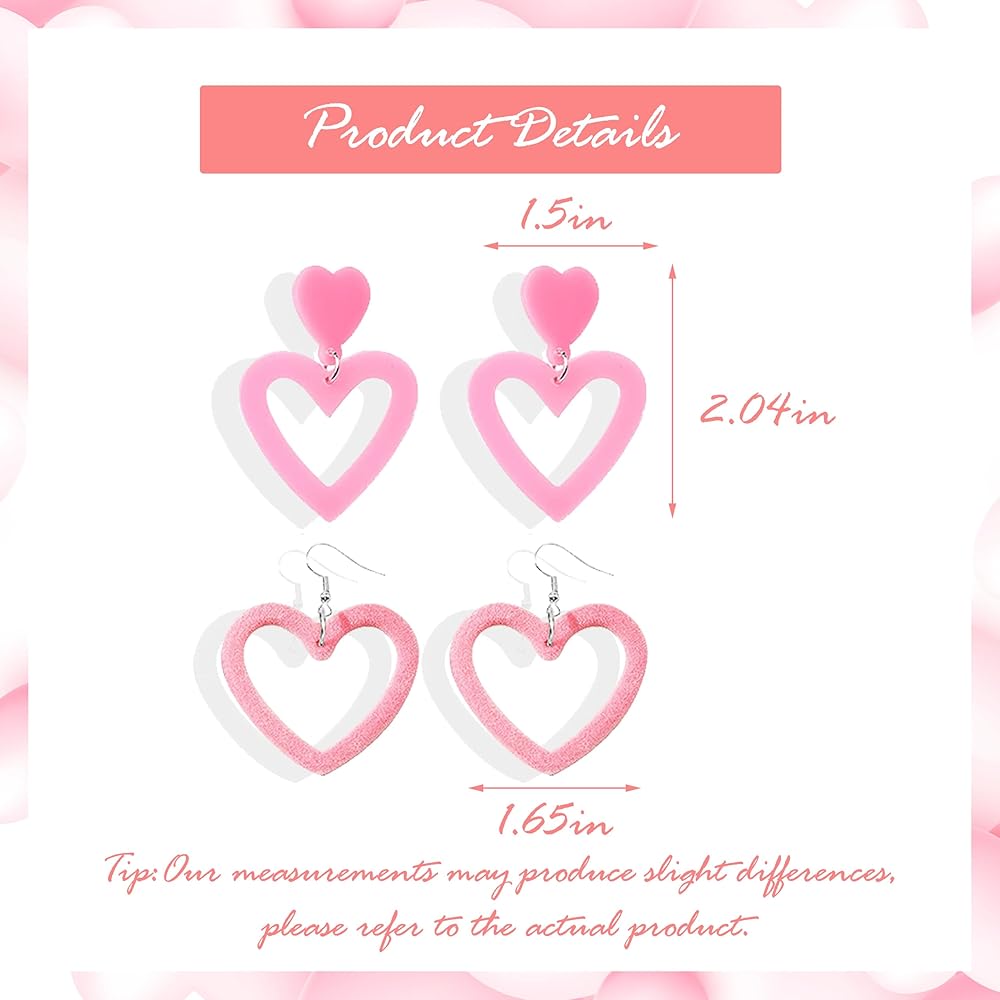 PINK EARRINGS: This heart shaped earrings uses good alloy, which is more suitable for you to wear,so you can wear it comfortably. Safe, lightweight and can not brings burden to your ears. You can wear it for a whole day of happy hour.