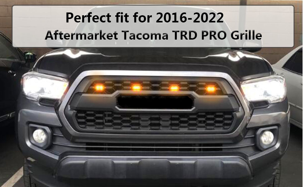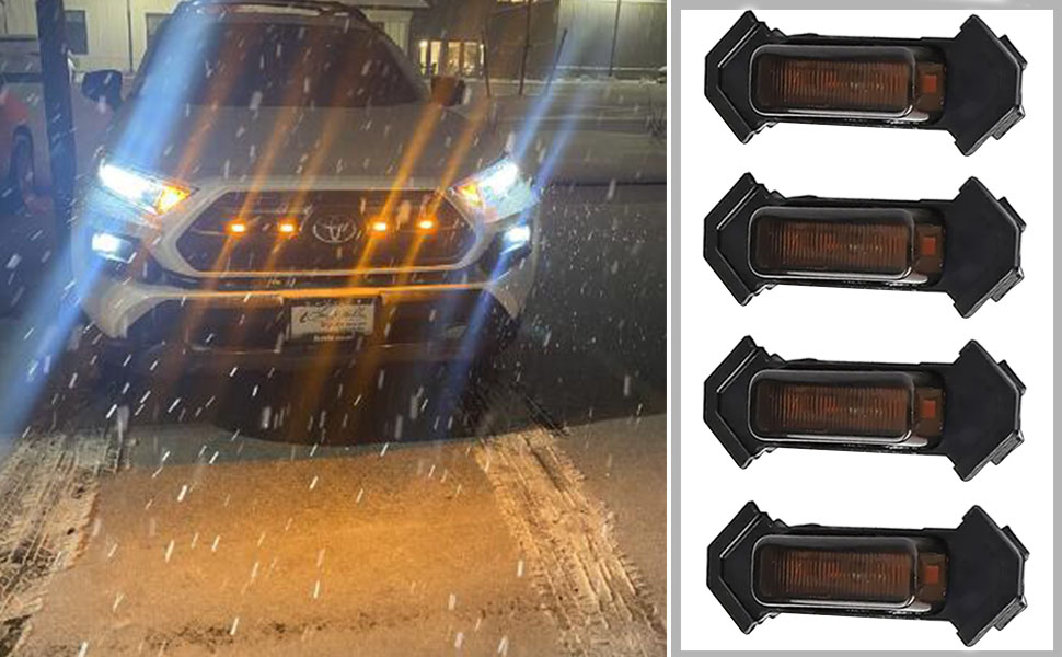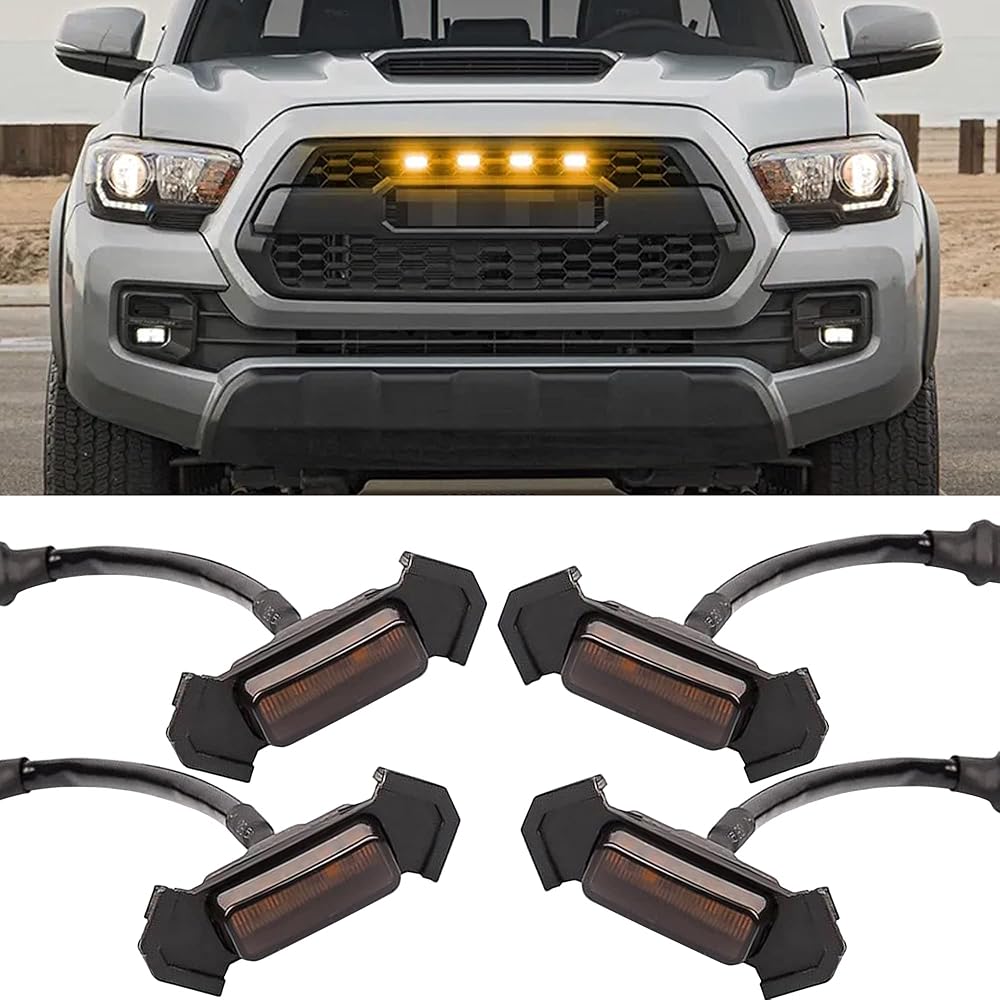 4Pcs LED Grille Lights Waterproof Amber LED Front Grille Lamp for Toyotaa Grille Light 2016-2019 Tacoma TRD Pro Grille with Wiring Harness Fuse Adapter…