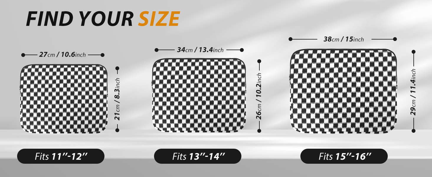 Checkerboard Design: Tired of the same old black or grey laptop sleeve? The Linpr Laptop Sleeve features a classic and stylish tessellated pattern. Whether in black and white or a colorful pairing, our checkered laptop sleeve helps you express personal style