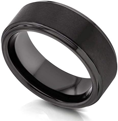 Simple and ultimately elegant, this handsome wedding band is designed for modern grooms-to-be who want to skip the classic wedding-band option and go for something more unique and different instead. Crafted in durable, black tungsten carbide, the contemporary design of this band promotes brushed finish and polished edges for notable contrast.