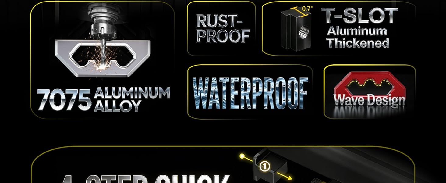 【Reliable Construction】 : RENO Bed Rail Cleat Crafted from high-quality 7075 aluminum material, ensure you never have to worry about rust damaging your truck bed. You can trust these cleats to hold your cargo securely without chipping, flaking, or compromising performance over time.