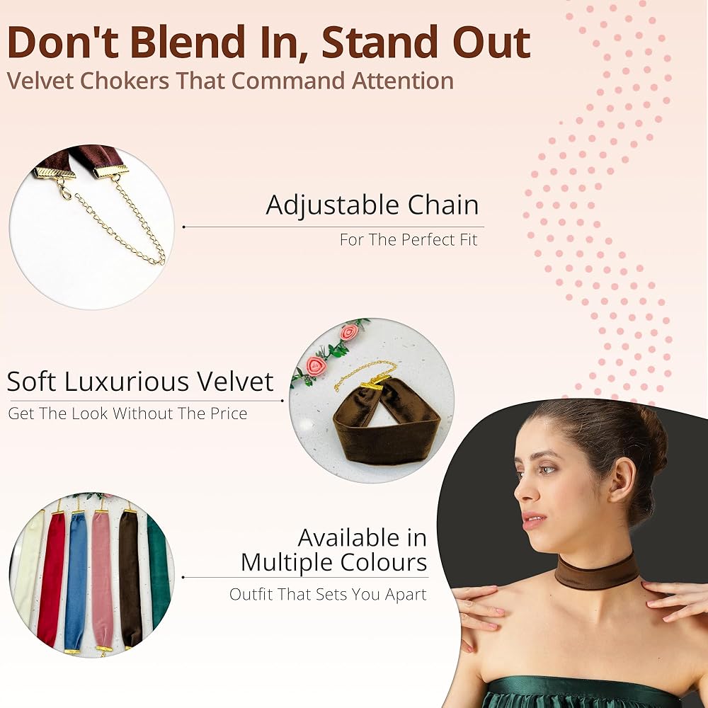 ❤ Skin Friendly Soft Velvet Material (12in Choker + 6in adjustable chain): Elevate your style with this Black chokers for women. A truly versatile black velvet choker collar for women.