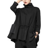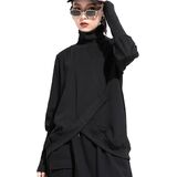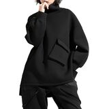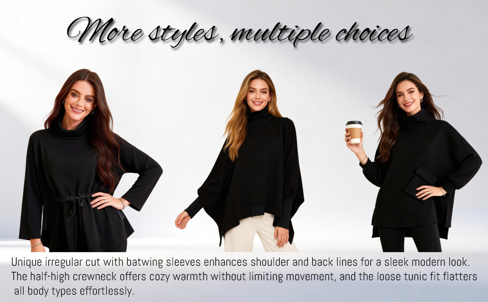 Unique irregular cut with batwing sleeves flatters shoulder and back lines for a sleek look; half-high crewneck design provides warmth without tightness.The loose fit tunic top silhouette hides flaws and fits all body types, while the unique design adds distinctive charm, blending casual ease with dressy elegance.