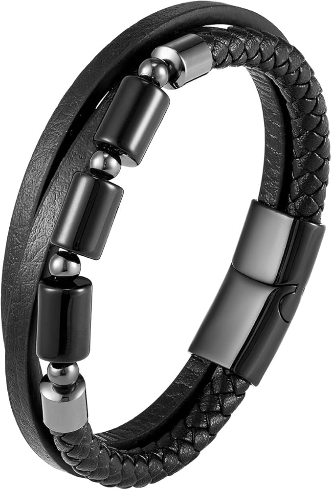 【Premium Material Bracelet】Made of high-quality leather and stainless steel materials.The hand-woven bracelet is tightly woven with a special durable stainless steel buckle. Easy put on without falling off.