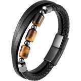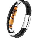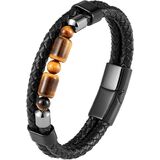[Beaded Stone design] Natural tiger eye Stone beads braided leather bracelet for men.Looks more gorgerous.