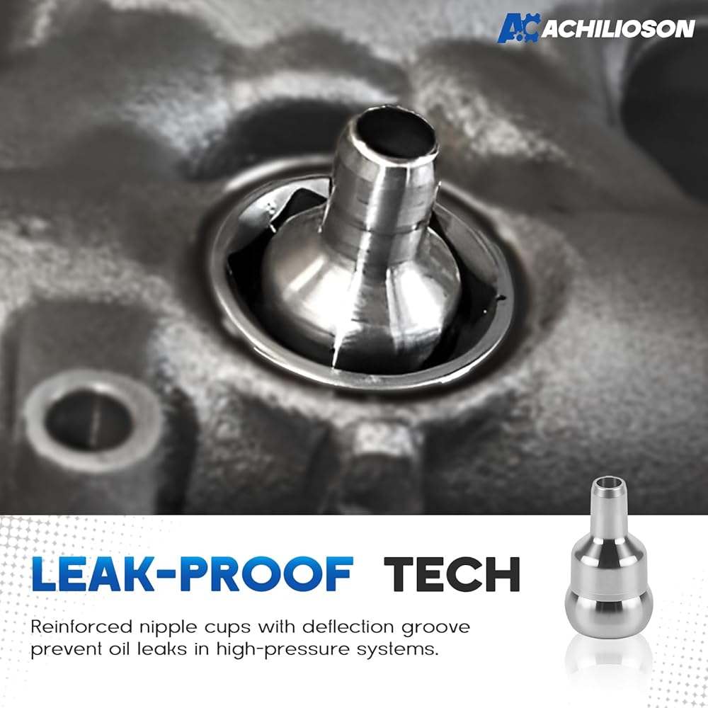 【Advanced Leak-Proof Technology】The leak-proof nipple cups feature reinforced, tool-grade construction and mimic OEM design. Their integrated deflection groove redirects potential oil leaks to the top injector seal, preventing engine seepage—ideal for maintaining high-pressure oil rail ball tube systems.