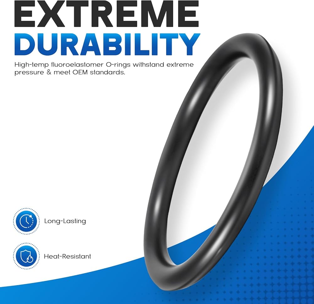 【High-Temperature Resistant Material】Crafted from durable fluoroelastomer, the O-rings withstand extreme pressure, ensuring longevity. Rigorously tested to meet or exceed OEM standards for reliability in demanding conditions.