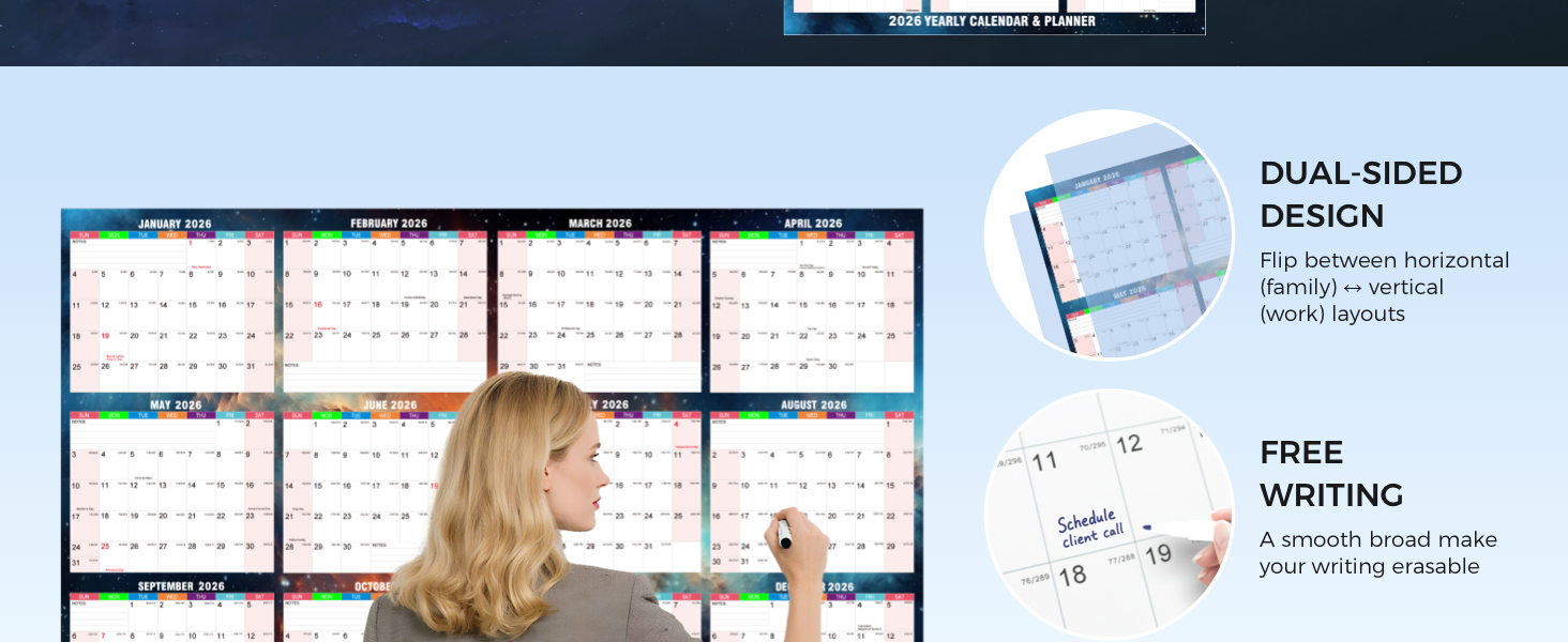 Heavyweight Paper: Engineered with thick laminated paper to prevent curling or tearing. Durable enough for daily rewriting and long-term use throughout 2026.