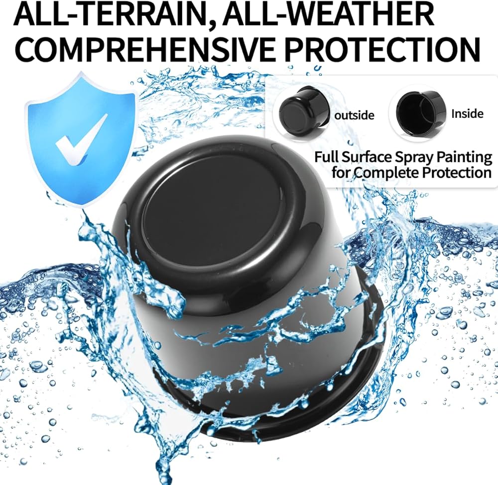 Wheel upgrade: Push-on hubcaps effectively block mud, sand, dust and other debris from entering the wheels, reducing dirt build-up in the wheel area. Keeps wheel hubs free from wear and damage, making the vehicle smoother and more stable for off-roading, wading and other wilderness adventures.