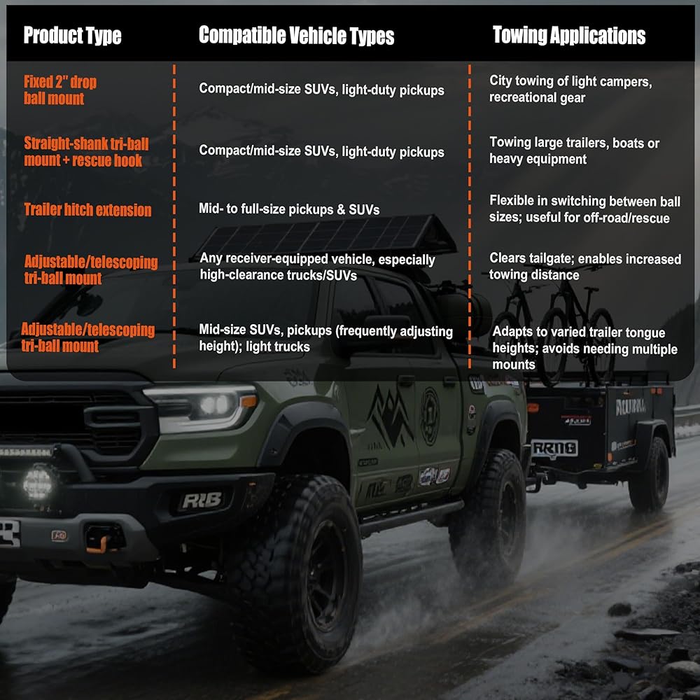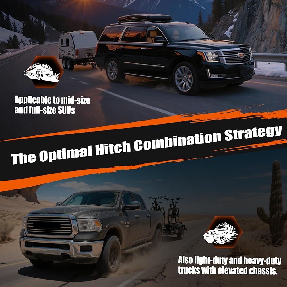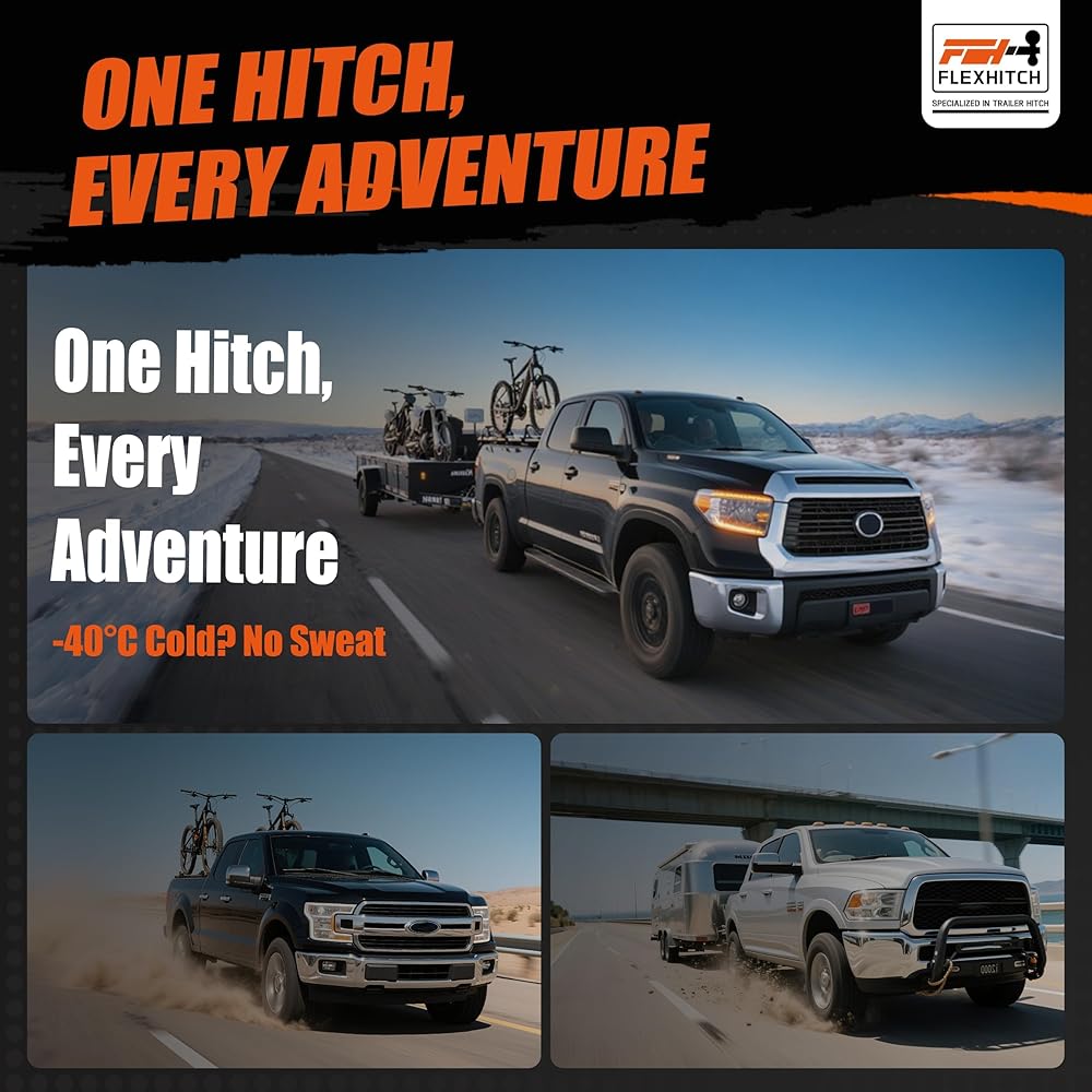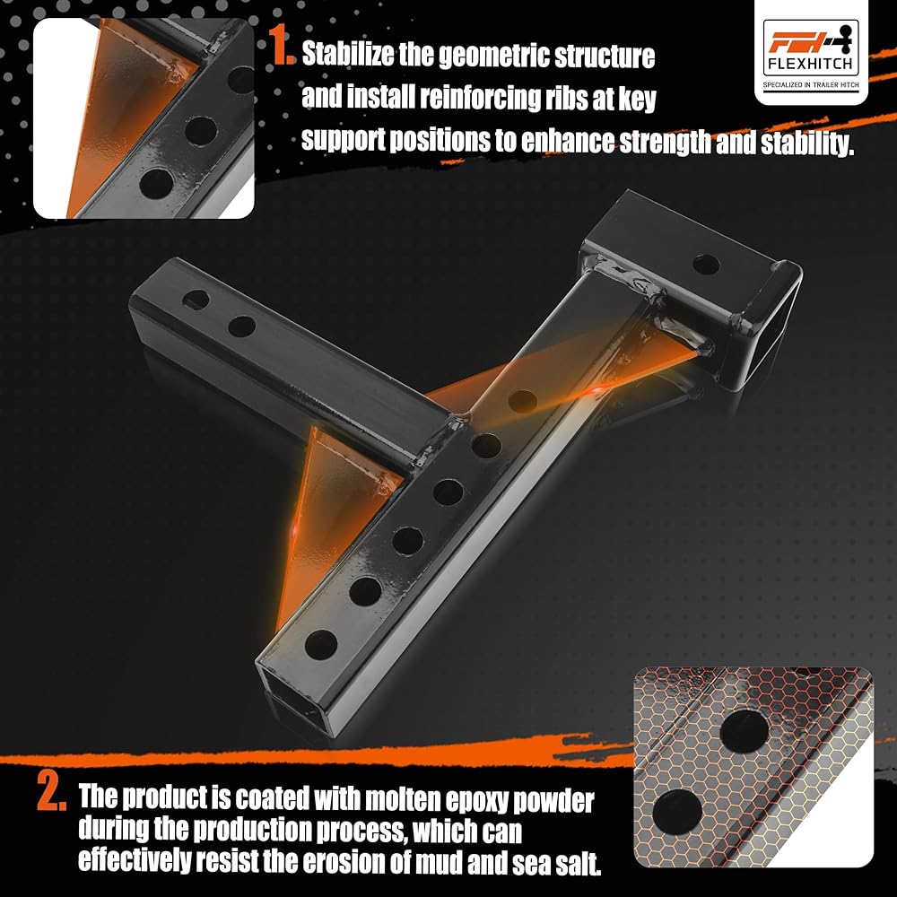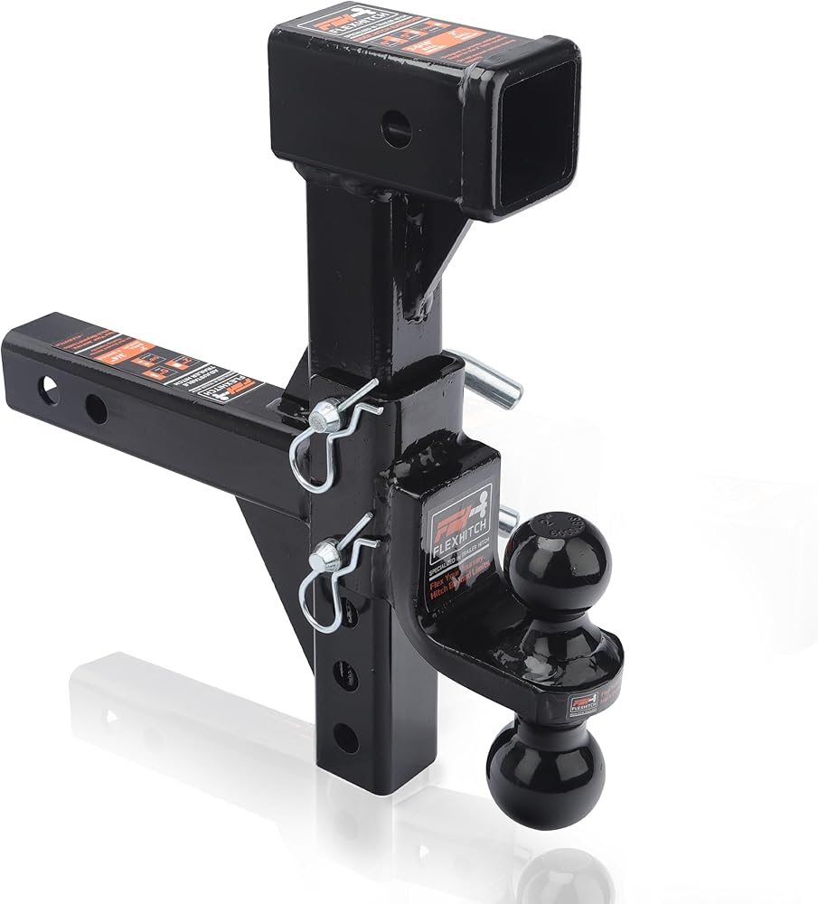 For drivers who need strength and versatility, the FLEXHITCH Heavy Duty Dual-Ball Trailer Hitch Mount offers a solution built to perform under pressure. Crafted from thick, high-grade steel and engineered with gusset-reinforced geometry, this hitch is perfect for SUVs and trucks hauling trailers, campers, or bike racks across 's varied terrain. The 8-inch riser extension ensures better tailgate clearance and fits seamlessly with elevated vehicles, while the 4.5-inch adjustable dual-ball mount (2" and 2-5/16") supports a wide range of towing applications—from off-grid camping to everyday hauling. Thanks to its heavy-duty build, FLEXHITCH offers a secure and stable ride, even when towing on uneven or muddy roads. The black anti-rust coating stands up to rain, snow, and salt—keeping your gear protected no matter the season. Compatible with any standard 2" receiver and easy to install, this hitch is a must-have for outdoor-loving who don't compromise on durability. Built for the North—reliable, rugged, and ready to tow