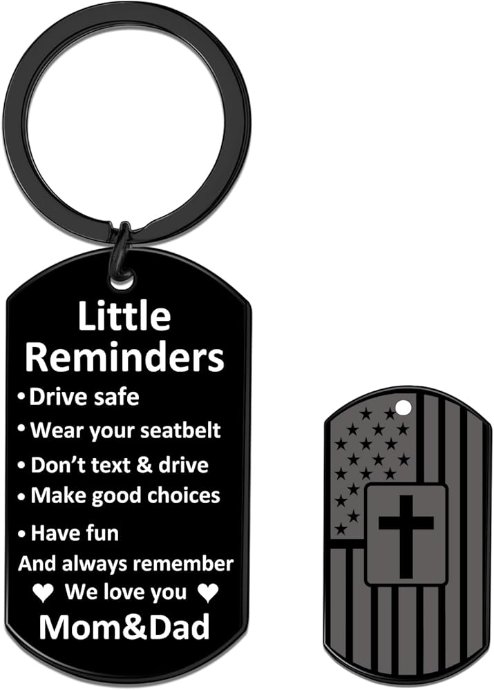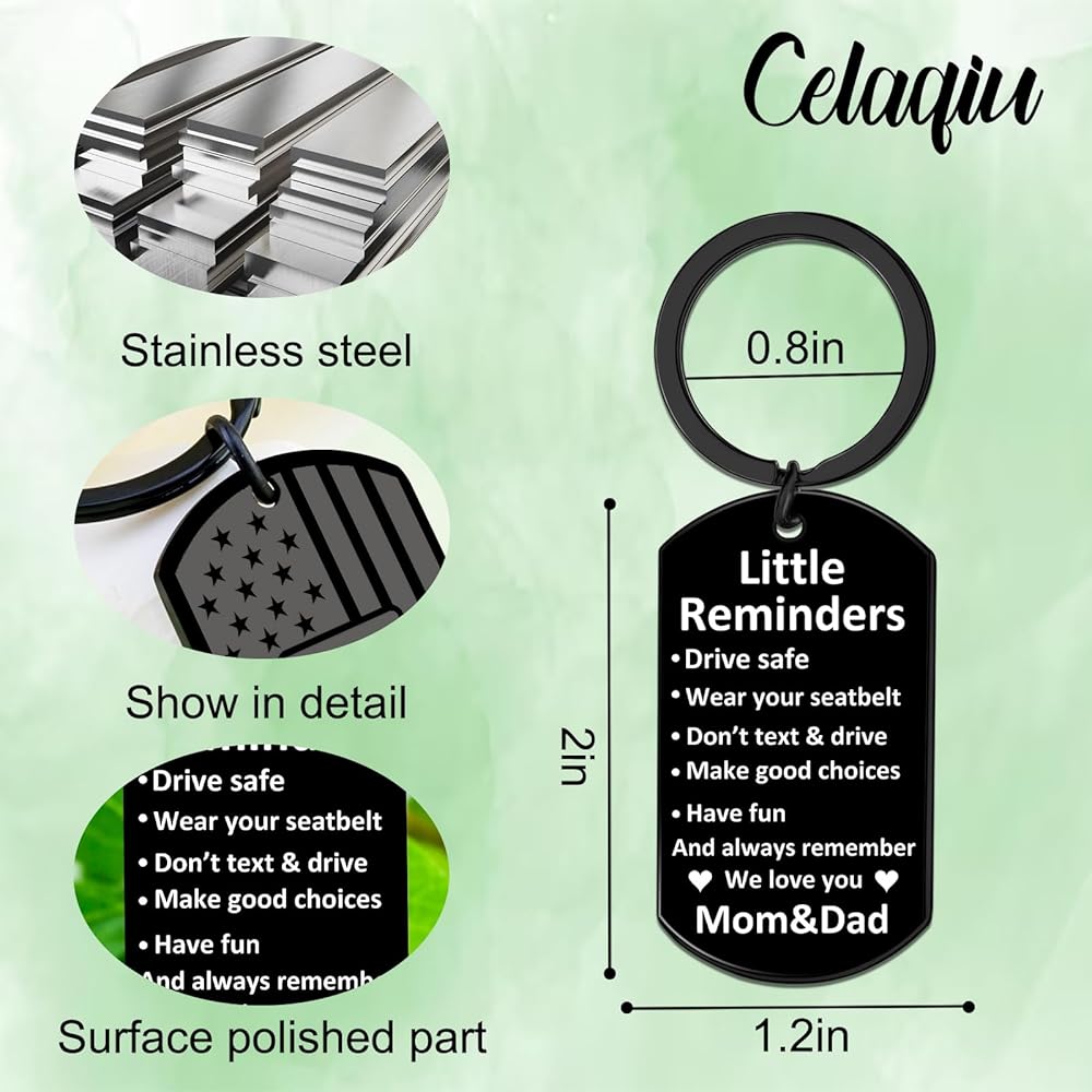 A Warm, Practical Token For Your Kid—This Stainless Steel Keychain Is Packed With **Little Reminders**: “Drive Safe, Wear Your Seatbelt, Don't Text & Drive, Make Good Choices, Have Fun And Always Remember We Love You, Mom & Dad”.