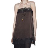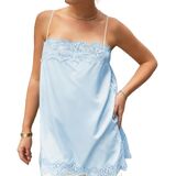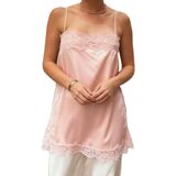 Womens satin silk cami tops, square neck, sleeveless spaghetti strap, open back, floral lace patchwork and A-lined side split designed, which can show off your feminine touch and personal charm.
