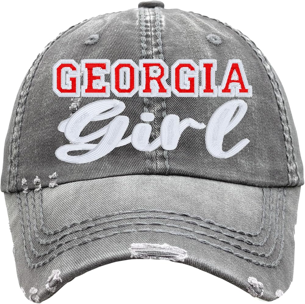 Women's Georgia Girl or Custom Text Hat, Baseball or High Ponytail Cap, Embroidered GA Gift Red White More, Clothing Present, Friend Wife Mom Daughter Mama Gigi Grandma Mimi