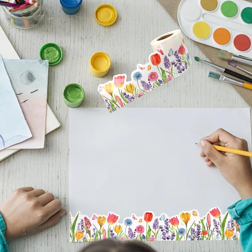 Spring Tulip Bulletin Board Border:Enhance your classroom with this vibrant tulip bulletin board border! Measuring 68.9 feet long and 2.99 inches high, it features bright and colorful flowers that bring energy and cheer to any space. Perfect for inspiring students' passion for learning and life, this border adds a refreshing spring touch to your decor.