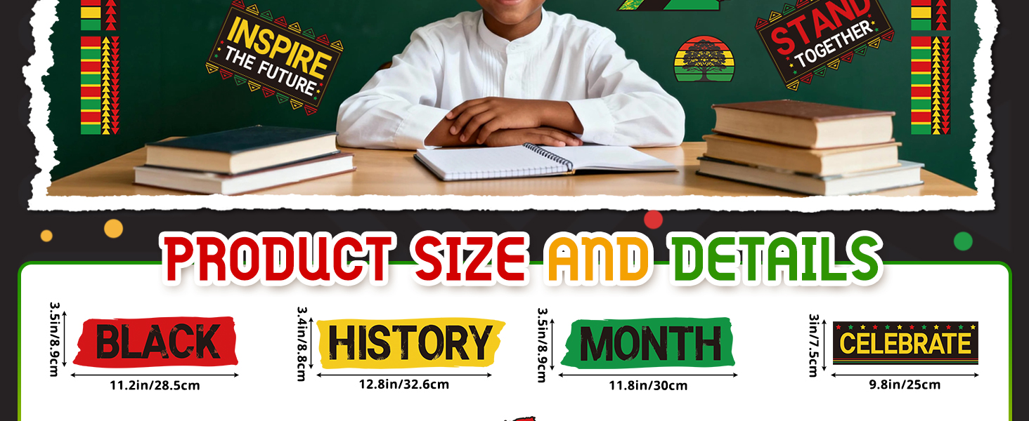 Easy to Display: Comes with adhesive dots for quick setup on Black History Month bulletin boards, walls, doors, windows, and lockers. Perfect for classrooms, offices, and living rooms.