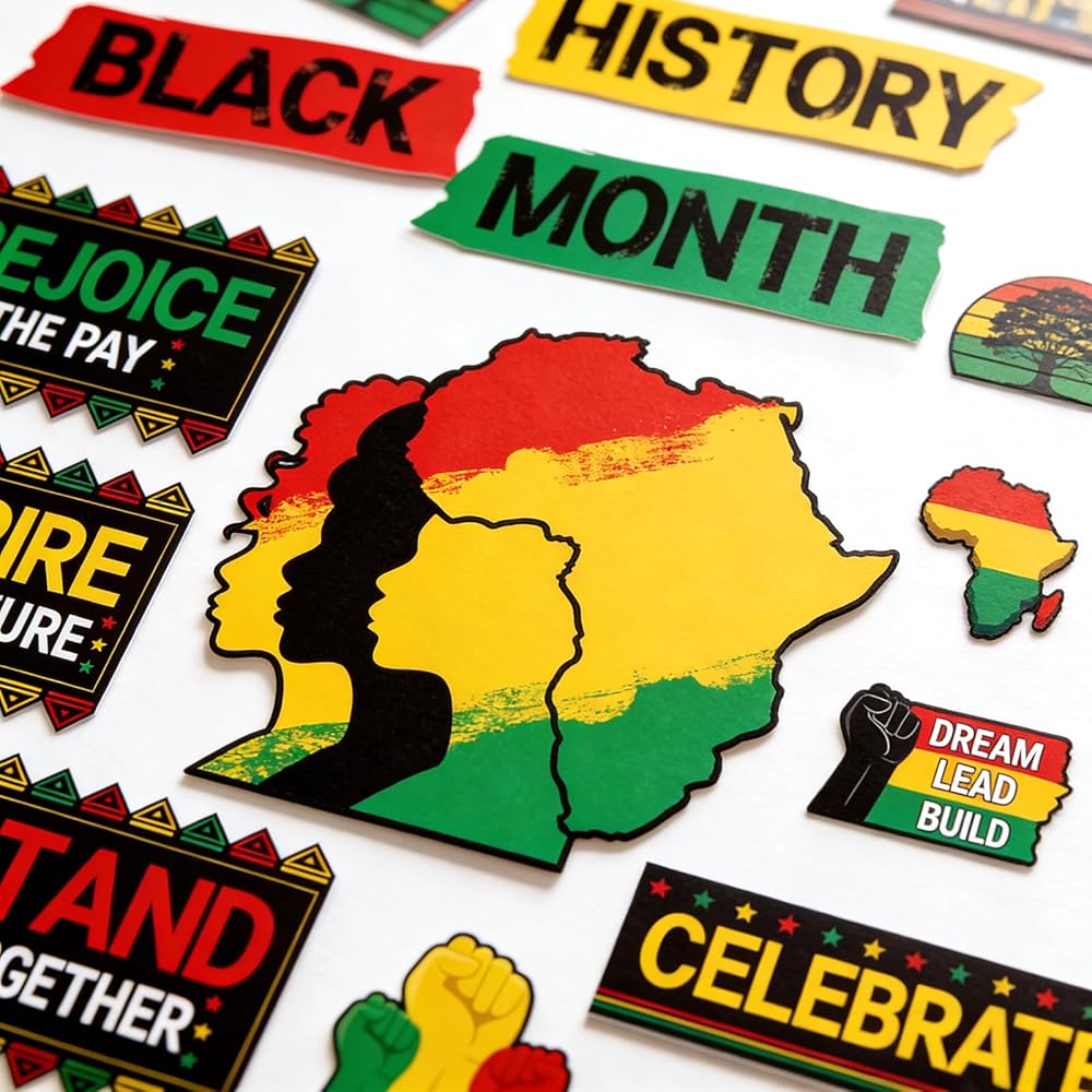 Black History Bulletin Board Decorations Set: Includes 22 Black History Month bulletin board decoration cutouts and 60 adhesive dots, allowing you to create a rich and engaging Black History Month display.
