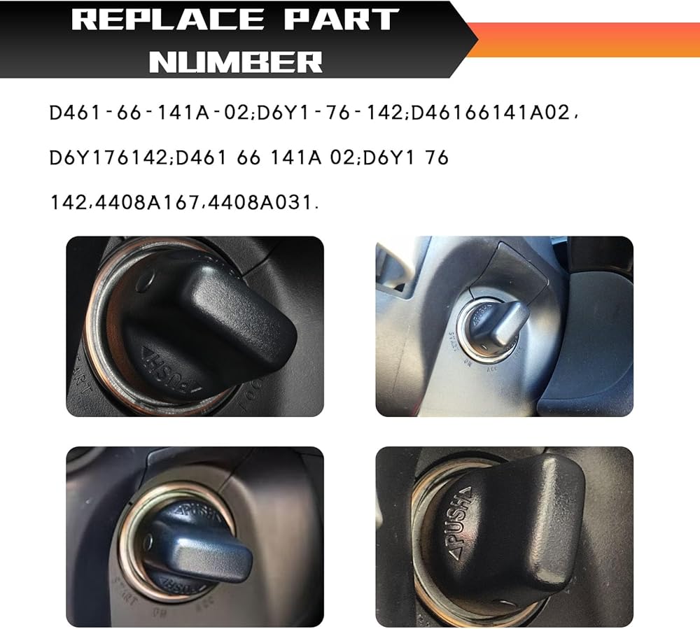 Replacement Part Numbers: This start button ignition lock knob is a perfect replacement for the original parts D461-66-141A-02; D6Y1-76-142; D46166141A02; D6Y176142; D461 66 141A 02; D6Y1 76 142; 4408A167; 4408A031