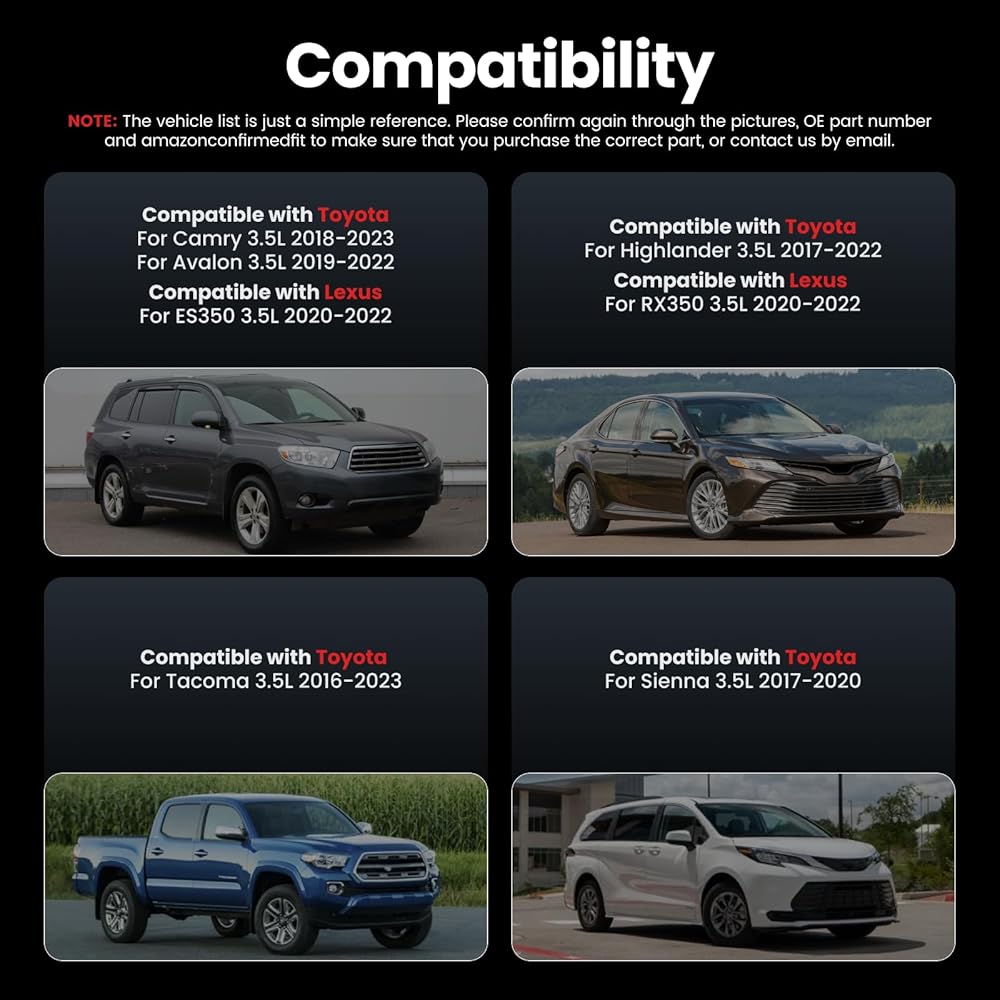 Compatible: Compatible with Highlander 3.5L 2017-2023, for Avalon 3.5L 2019-2022, Compatible with Lexus ES350 3.5L 2020-2022, for RX350 3.5L 2020-2022