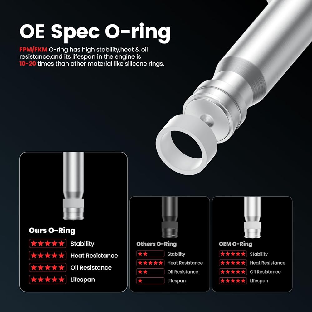 Specification: Set of 6 OE Spec replacement GDI fuel injectors with O-Ring; 1 Injection hole as original part; Every fuel injector is tested before shipment; Direct replacement, easy installation; A long service life & stable working; Helps resolve idle issues, check engine light alerts, error codes, fuel efficiency