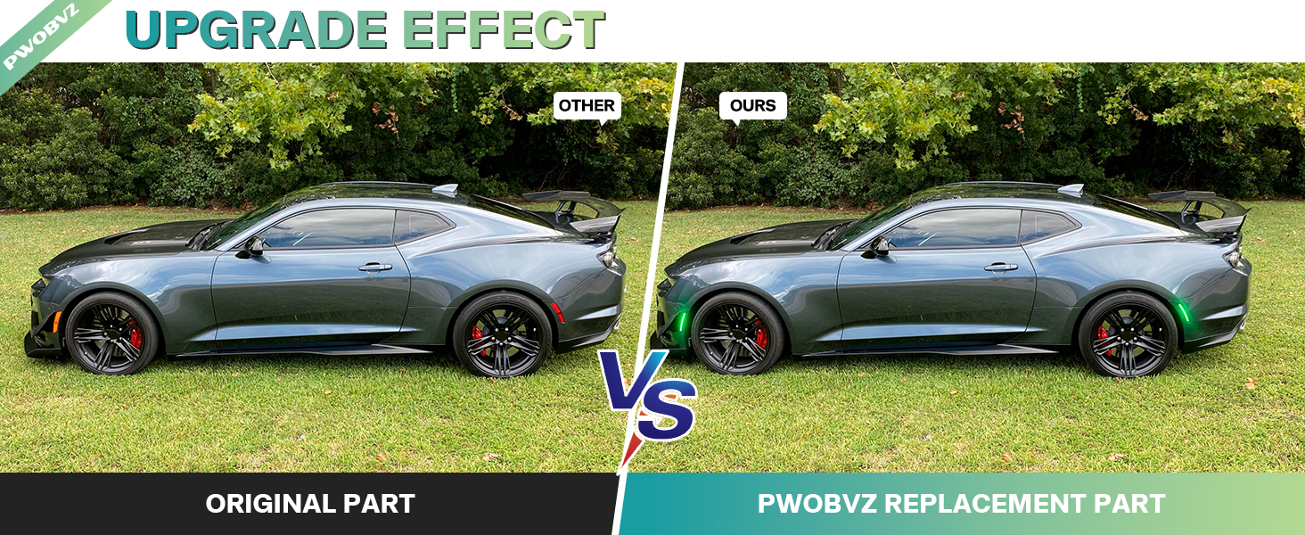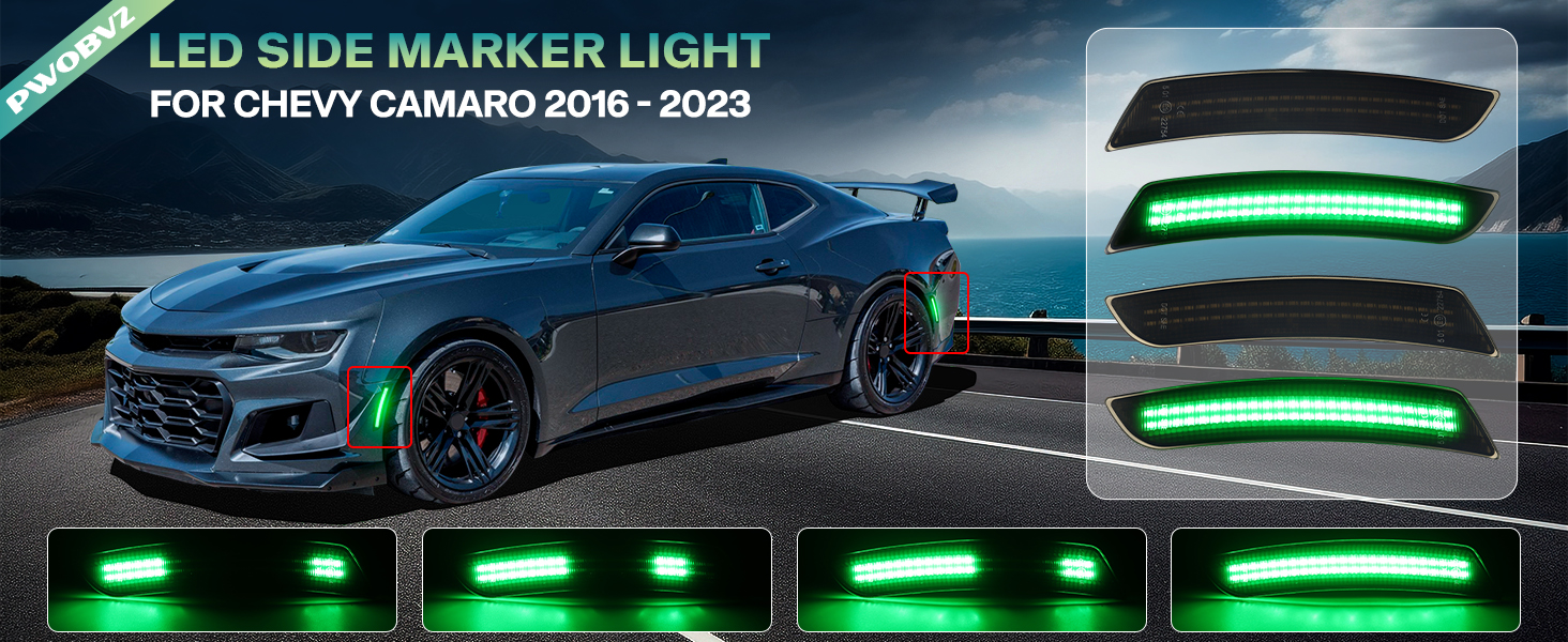 New Color: for camaro led side markers adopts with 2-row green led chips; the full LED stripes are much brighter and prettier than Halogen Bulbs; Rather than white side markers for camaro, unique retro green color makes your car more attractive at drving