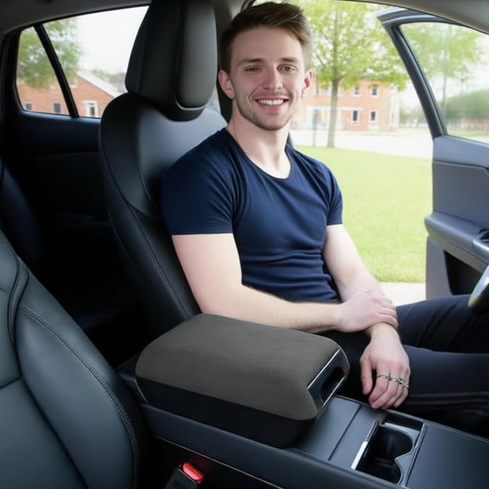 【Height-Enhancing Design 】Engineered with a height-enhancing structure, this armrest cover for model y juniper and tesla model y armrest cover provides optimal arm support tailored for you. By elevating the armrest to the perfect height, it disperses elbow pressure evenly, reducing fatigue during long drives or extended commutes. The plush Suede Fleece surface adds an extra layer of comfort, letting you rest your arm comfortably while maintaining full control of the steering wheel – for Tesla drivers seeking a more ergonomic driving experience