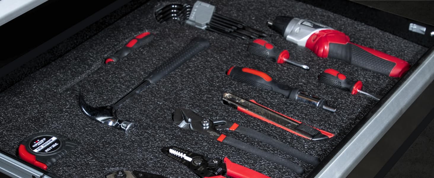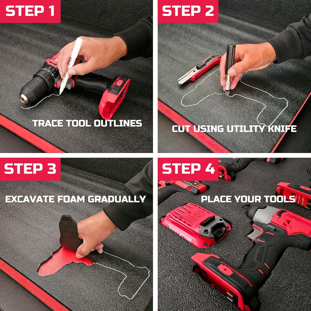 ADJUSTABLE SIZE & EASY CUSTOMIZATION: Tool foam inserts are easily customizable to match the size and shape of your tools. With a simple outline and cut, you can create designated spots for each tool, ensuring a perfect fit. This not only keeps your tools organized, but also adds a professional and polished look to your toolbox.
