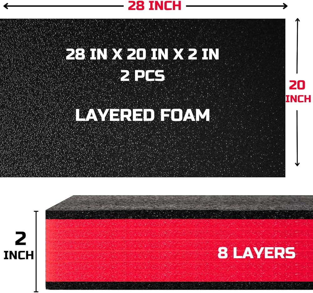 ONREVA Tool Box Foam 28x20x2 inch 2Pack, Foam Inserts for Cases, Polyethylene Storage Sheets for Toolbox Hard Case, Tool Shadow Insert, Kaizen Organizer Sheet, Black with Red