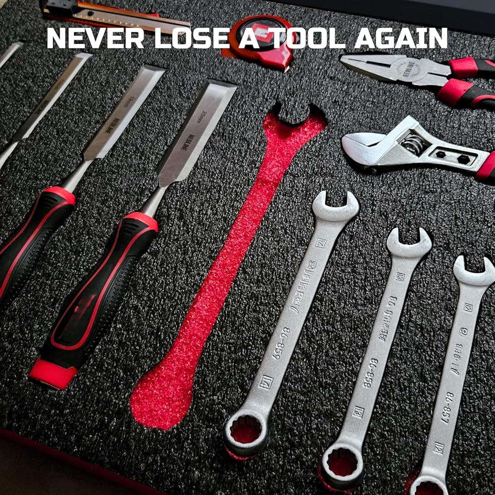 STRONG & RELIABLE: The tool foam is made of high-quality polyethylene foam material that is durable and reliable, resistant to fading and breaking, providing a long-lasting solution for tool organization. The foam is made of quality materials that are odorless, ensuring a pleasant user experience without any unpleasant smells.