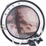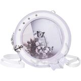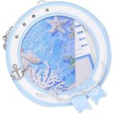 Step into nautical elegance with this charming round crossbody bag . The distinctive porthole-inspired design features a navy blue and white color scheme adorned with decorative rope details and anchor accents. Made from durable PU leather, this bag measures 8.66 x 3.54 inches with a display window of 6.29 x 0.78 inches, perfect for showcasing your favorite artwork or photos. The bag's lightweight construction at just 1.3 lbs makes it comfortable for all-day wear. The clear display window is framed by silver-toned grommets, adding an authentic maritime touch. This versatile accessory can be styled with both casual and dressy outfits, making it an eye-catching addition to any wardrobe. The adjustable shoulder strap ensures comfortable carrying, while the secure zipper closure keeps your belongings safe. Whether you're heading to a seaside adventure or bringing nautical charm to city streets, this unique crossbody bag makes a distinctive fashion statement.
