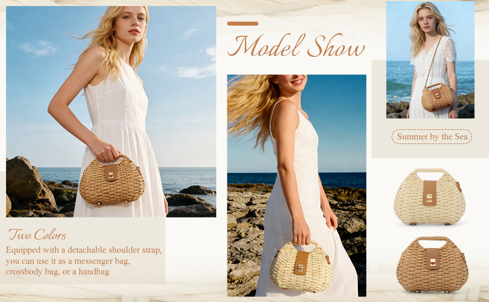 Chic and Stylish: This handmade straw bag adds a touch of elegance and charm to your beach vacation, the fashion design of shell appearance. Equipped with a detachable shoulder strap, you can use it as a messenger bag, crossbody bag, or a handbag