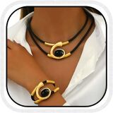 Gold pendant Jewelry sets combining an metal pendant with a double-layer black rope,looks simple but stylish to wear.
