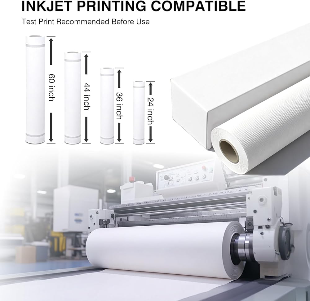 This printable canvas roll is designed for professional wide format inkjet printing, offering reliable ink reception, fast drying performance and waterproof handling for consistent production results. The coated surface helps reduce smudging during printing, trimming and finishing, supporting efficient workflows in studio and commercial environments. Suitable for short-term outdoor display and exhibition use when printed with appropriate inks and proper finishing. Designed for wide format inkjet printers, compatibility may vary by printer model and ink type, so a test print is recommended before full production to ensure optimal results. Available in heavyweight options from 200 to 420 gsm, these acid-free canvas rolls are offered in both polyester and cotton-based materials to meet different printing, display and production requirements. The durable construction provides stable feeding, easy handling and dependable performance for continuous printing workflows. Widely applied in photo canvas printing, giclée reproduction, wall décor, display graphics, signage and exhibition output, this canvas roll is suitable for photographers, designers, print shops, sign shops and commercial printing professionals seeking consistent quality and cost-effective production materials.
