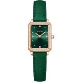 - Dial: Rectangle with a green/white dial and rose gold accents.
