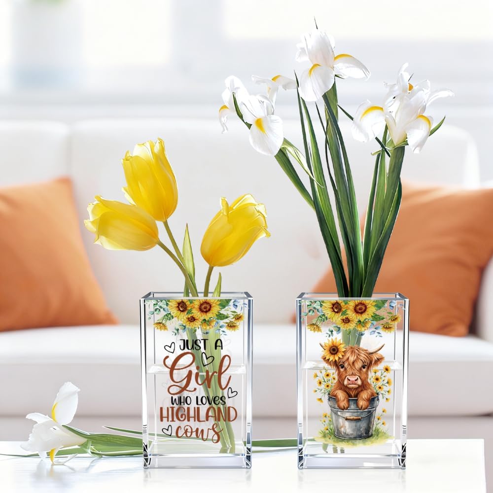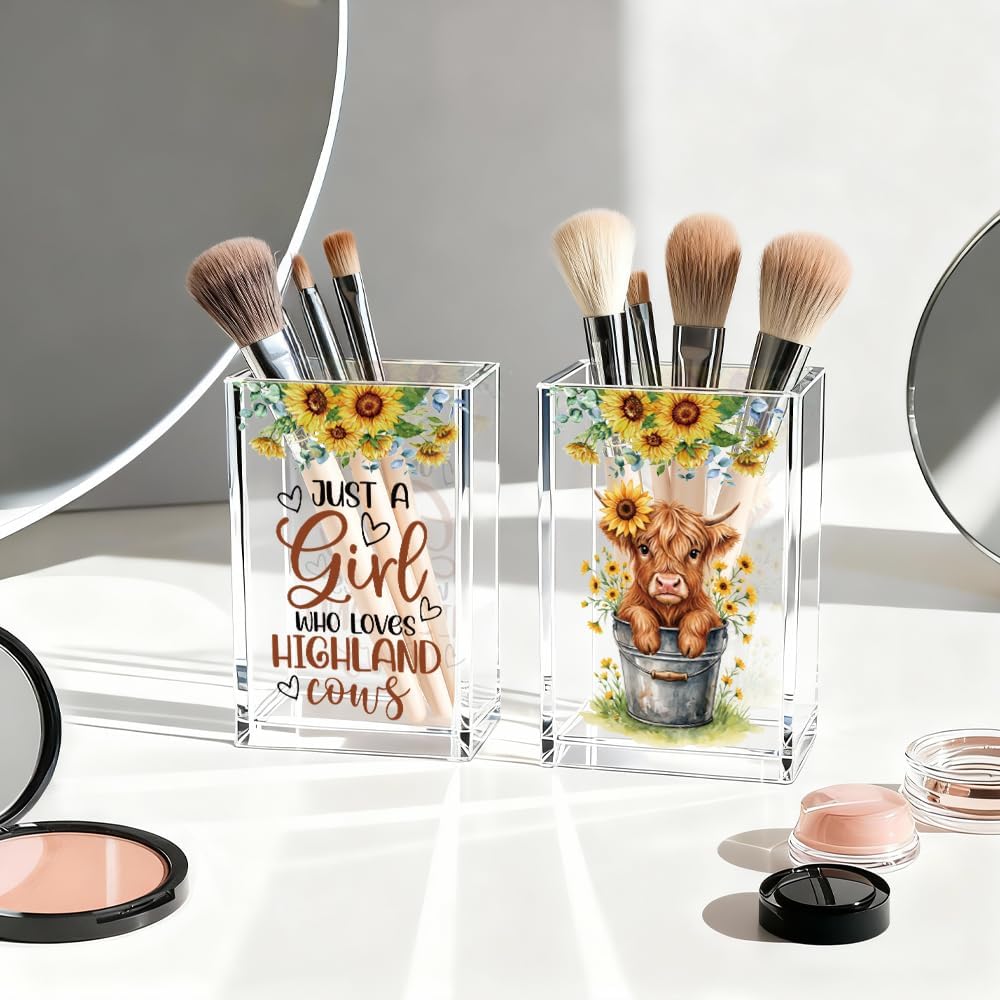 Just A Girl Who Loves Highland Cows Acrylic Cosmetic Pen Holder Cup Set 2, Cute Animal Pencil Holder Desk Organizer, Funny Desk Accessories, Highland Cow Lover Gifts for Women Coworkers Besties