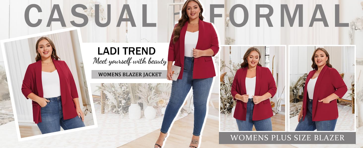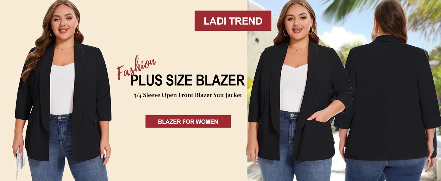 【SOFT FABRIC & FLATTERING FIT】:XL=US 16-18, 2XL=US 20-22, 3XL=US 24, 4XL=US 26, 5XL=US 28. Made from a soft and high-quality fabric, these womens plus size blazer are comfortable and provide a flattering silhouette, enhancing your confidence and professional appearance.