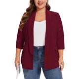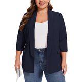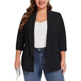 【FASHION FEATURE】: 3/4 Sleeve Plus Size Blazer,Open front blazer suit jackets with two functional pockets,shawl collar blazer for womens dressy casual. Whether you're dressing up a pair of jeans or adding a layer of sophistication to your business-ready look, the sleek silhouette and stretch comfy fabric of this plus size blazer make it the perfect choice for professional style and comfort.